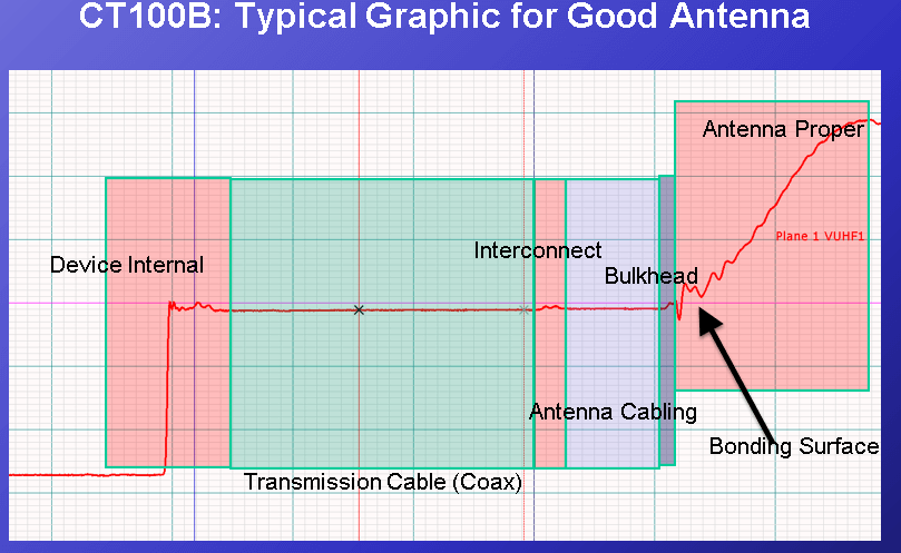 - Look for any differences in amplitude between waveforms (impedance irregularities) between connection point and antenna.
