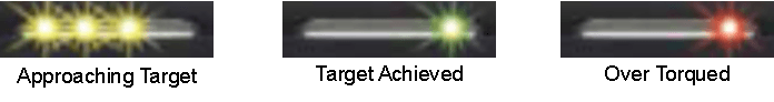 Yellow - First light indicates 40% of target torque or angle reached. Second indicates 60% of target reached. Third indicates 80% of target reached.